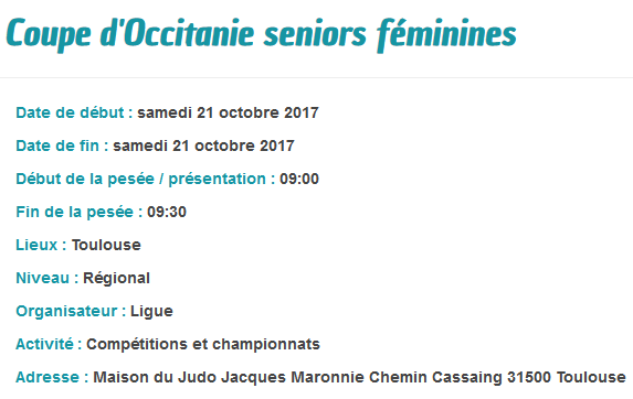 « Tous les Évènements Cet évènement est passé. Coupe régionale seniors qualificative Coupe de France 21 octobre 2017 -8 h 00 min - 17 h 00 min Free « Groupe Sportif RS Tournoi régional de l’Aude benjamins – 30kgs à -46kgs label Occitanie » Ajouter au calendrier Google Agenda iCalendar Outlook 365 Outlook Live Détails Date : 21 octobre 2017 Heure : 8 h 00 min - 17 h 00 min Prix : Free Catégories d’Évènement: Championnat, Juniors - Seniors