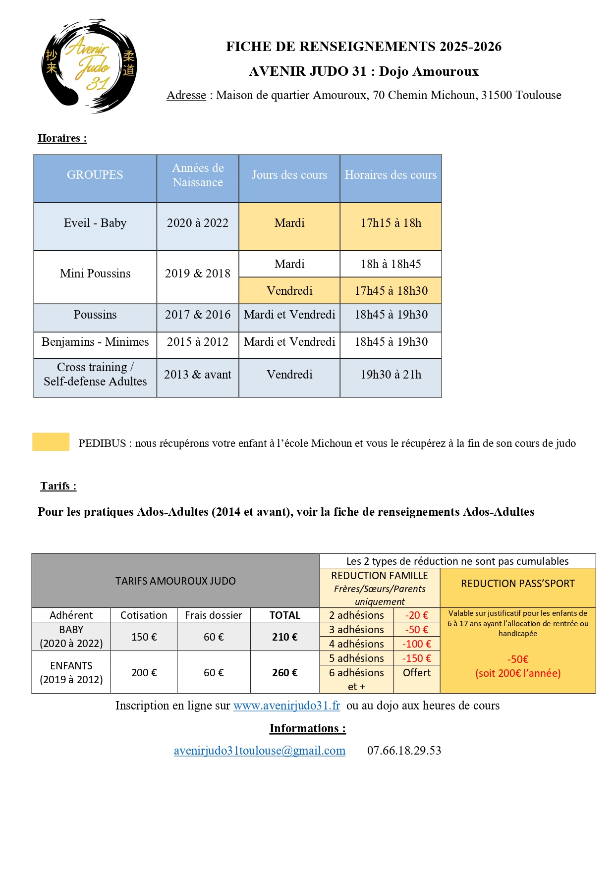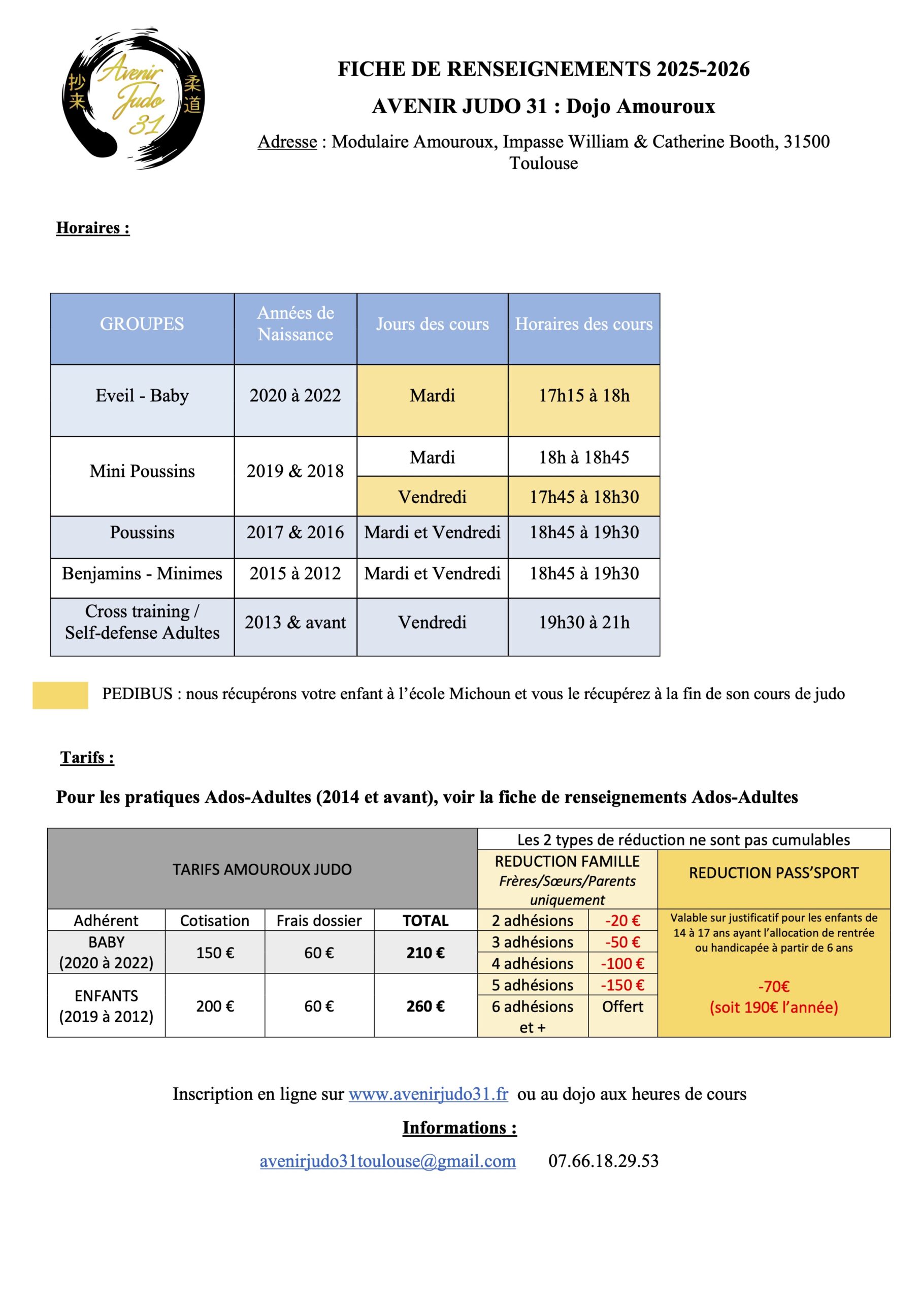 Pour cette saison 25/26, pour cause de travaux, le judo aura lieu dans le modulaire Amouroux situé Impasse William & Catherine Booth 31500 Toulouse.