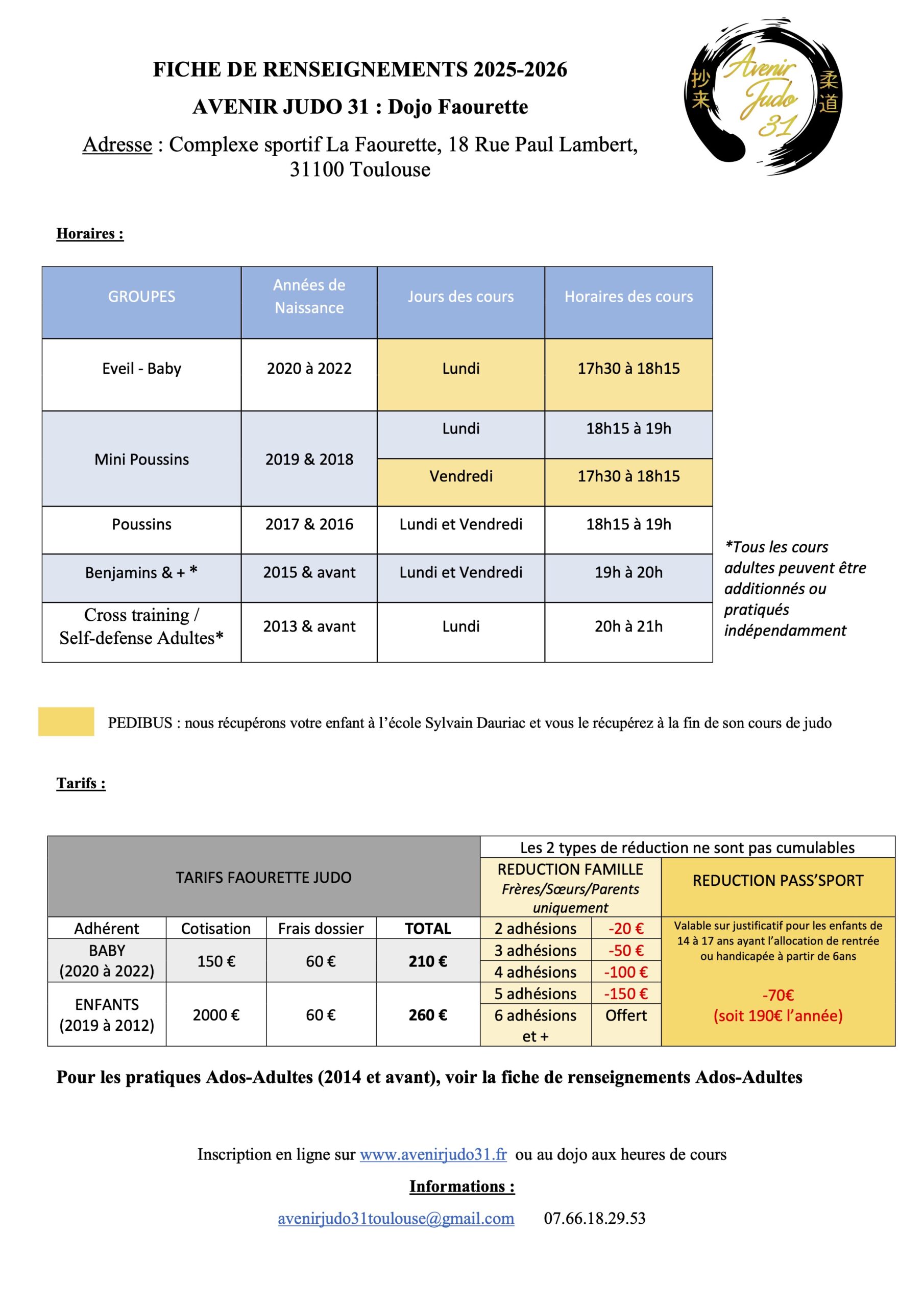 Grâce à la Mairie de Toulouse, Avenir Judo 31 intervient au sein du complexe sportif de la Faourette. Nous accueillons les enfants dès 3 ans. Nous amenons gratuitement au dojo les enfants des écoles SYLVAIN DAURIAC.