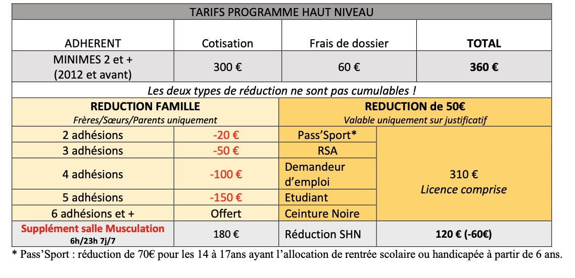 Tarification programme Haut Niveau AJ31  :